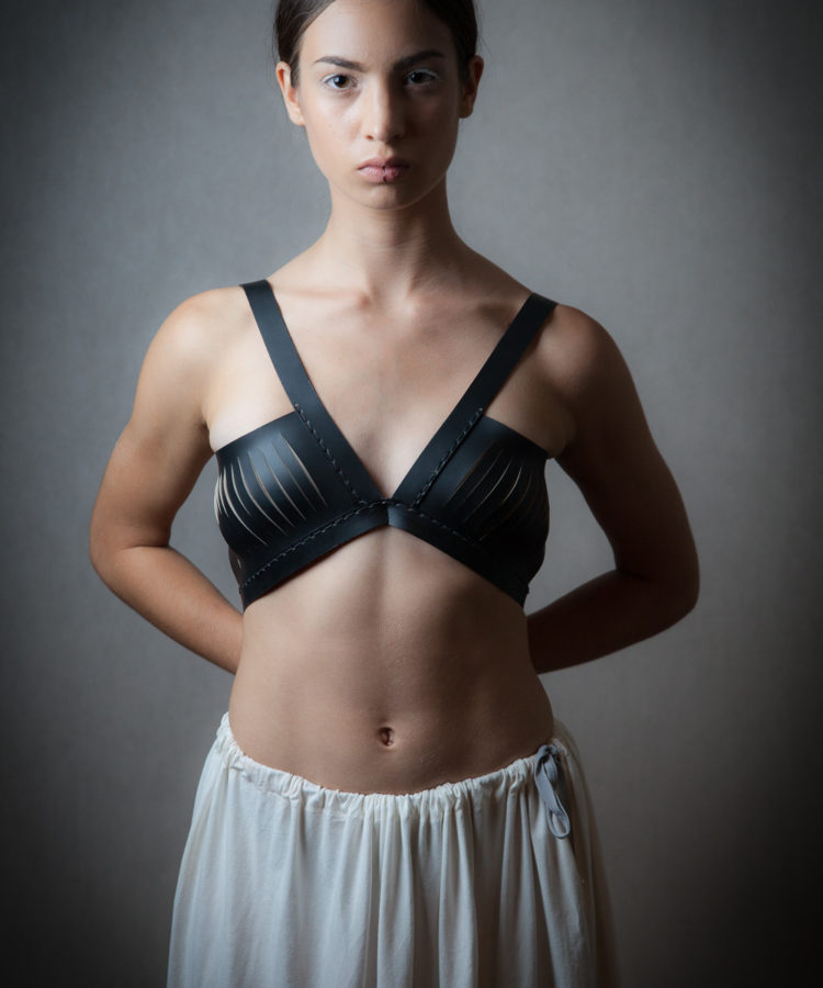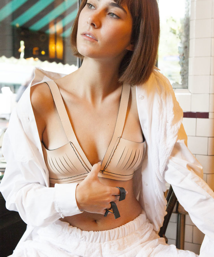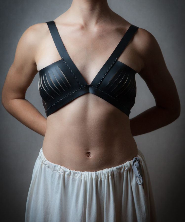 The high quality leather is coloured in both sides of this reversible bra (black/nude). Wear it over a dress or under a shirt–this is the perfect way to add a extra edge to your look.